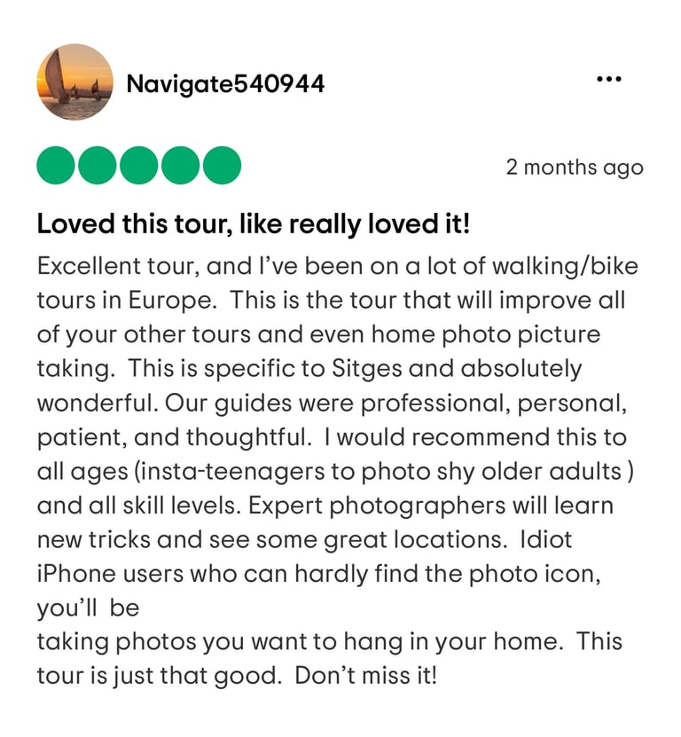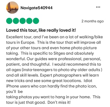 White streets, balconies decorated with flowers and art nouveau. Enjoy learning new photography skills and creative techniques by capturing the hidden treasures and most photogenic spots of Sitges by walk.